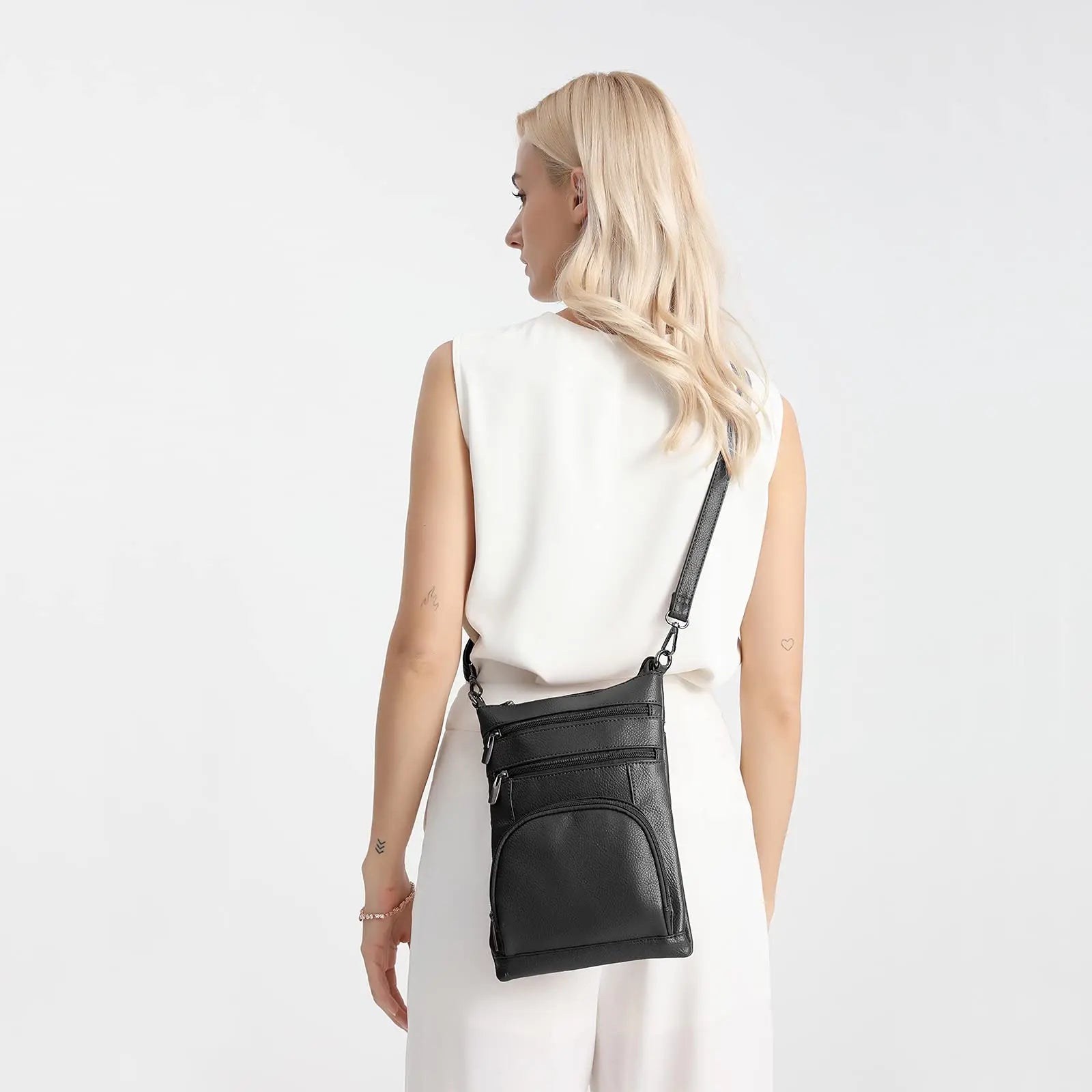 Deze compacte crossbody is gemaakt van waterbestendig PU-leer en houdt je essentials veilig en overzichtelijk dankzij de meerdere vakken en RFID-blokkerende voering. Licht van gewicht en met een verstelbare schouderriem tot 130 cm draag je hem comfortabel, of je nu onderweg bent naar werk, een lunchafspraak of een citytrip.